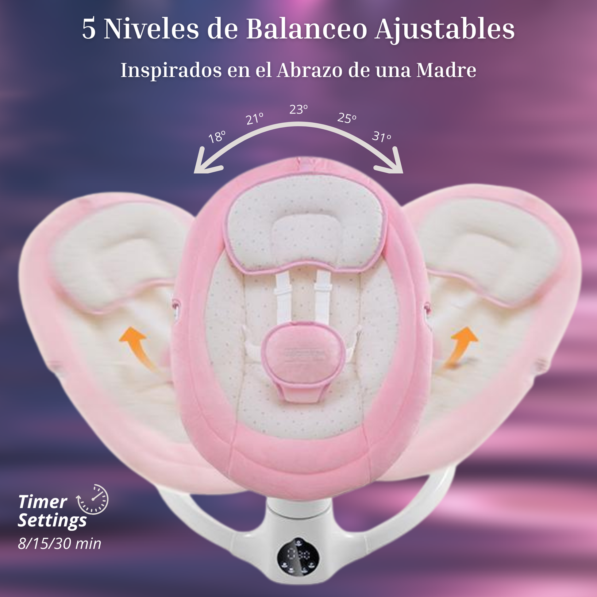 - ✨ Balanceo suave y personalizable — Disfruta de 5 velocidades ajustables para adaptarse al ritmo y comodidad de tu bebé.